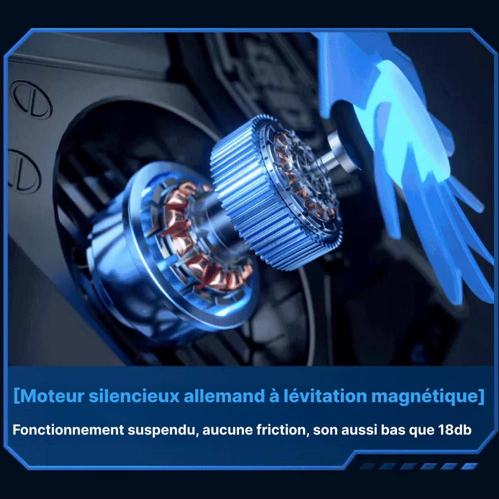 Moteur premium à lévitation magnétique offre des performances de 4800 RPM tout en maintenant un fonctionnement silencieux de 12 dB.