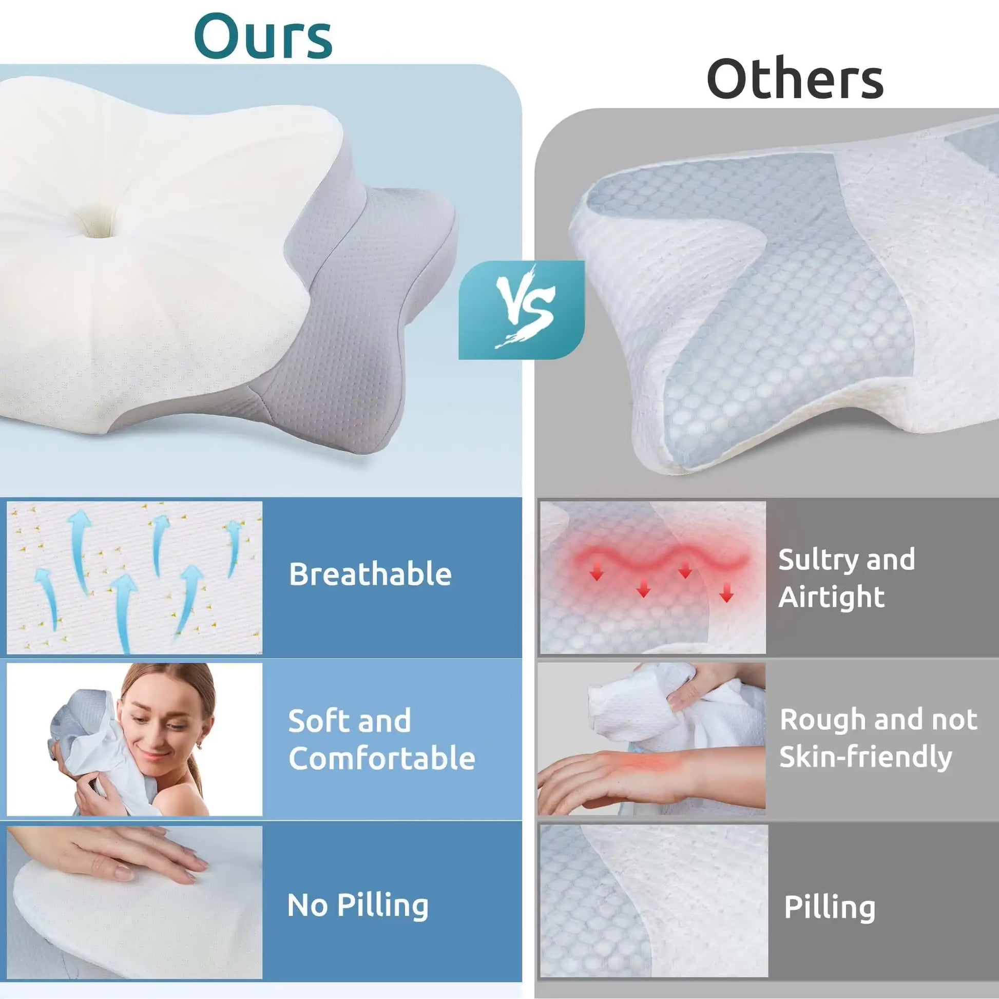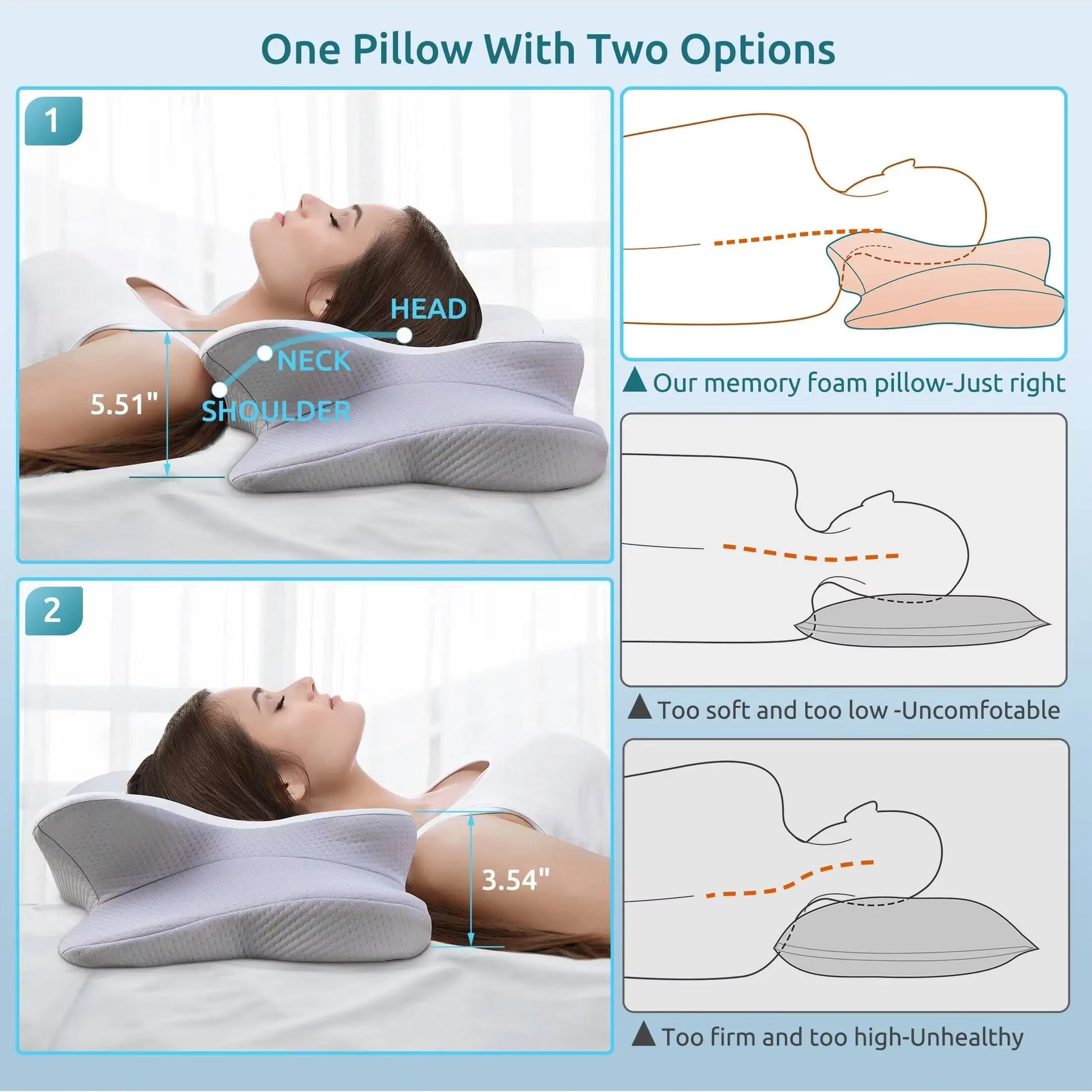 Découvrez un confort personnalisé grâce à notre mousse à mémoire de forme sensible à la température qui réagit à la chaleur de votre corps, créant une sensation d'ajustement sur mesure. Le design innovant en forme d'aile de papillon offre un soutien supplémentaire aux épaules tout en maintenant un positionnement correct de la tête, parfait pour les dormeurs sur le côté et sur le dos.